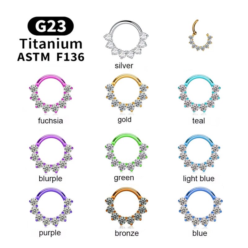 F136 Titanium Nose Ring Marquise Zircon Septum Piercing Hinged Segment rings Round Earrings Hoop Septum Clicker |