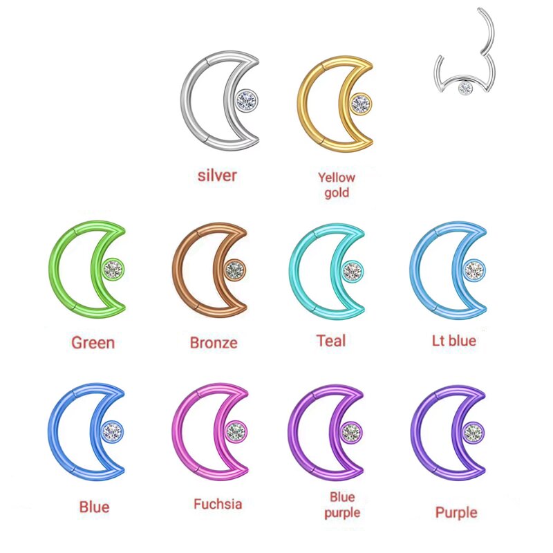 1PC ASTM F136 G23 Titanium Piercing Nose Rings Hinged segment rings Zircon Moon Segment Clicker Helix Tragus Cartilage Earring Jewelry