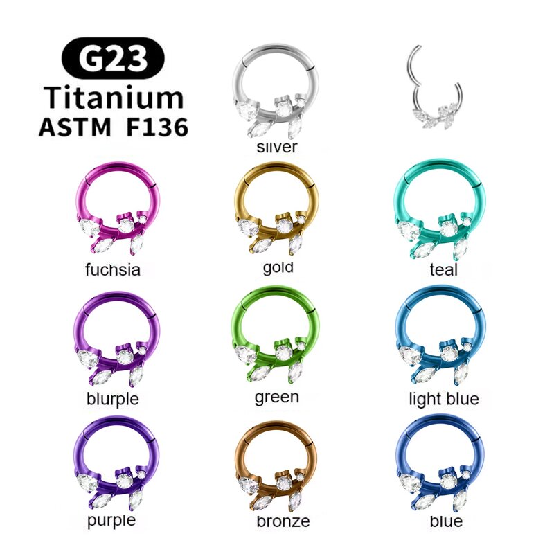 1PC G23 Titanium Zircon Hinged segment rings Solid Leaf Nose Ring Piercing Septum 16G Helix Earring |